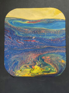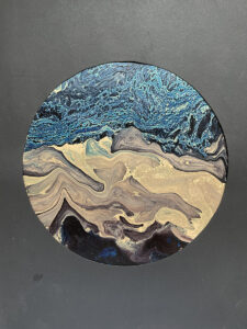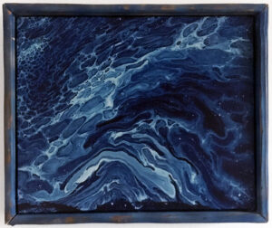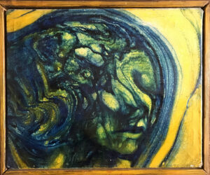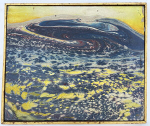 In this period Gunner finds real confidence in his style and career. He develops a new way of creating work. Using water baths with oil paint to create surrealistic patterns and spectra of light, which he manages to manipulate into landscapes and figures. However, the process was very space consuming and Gunner starts having concerns about working with oil paints and living in a polluted city with a small child. His concerns about the environment was increasing, as a consequence the family decides to move to the countryside where there is more space to work and easy access to nature.